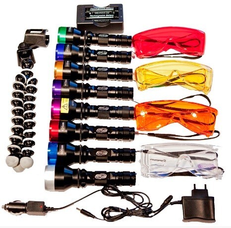 • Nova Torch Lights are available individually or as cased sets which include 4 goggles, 1 tripod, 1 care charger, 2 battery charger, carrying case and other accessories, please see below